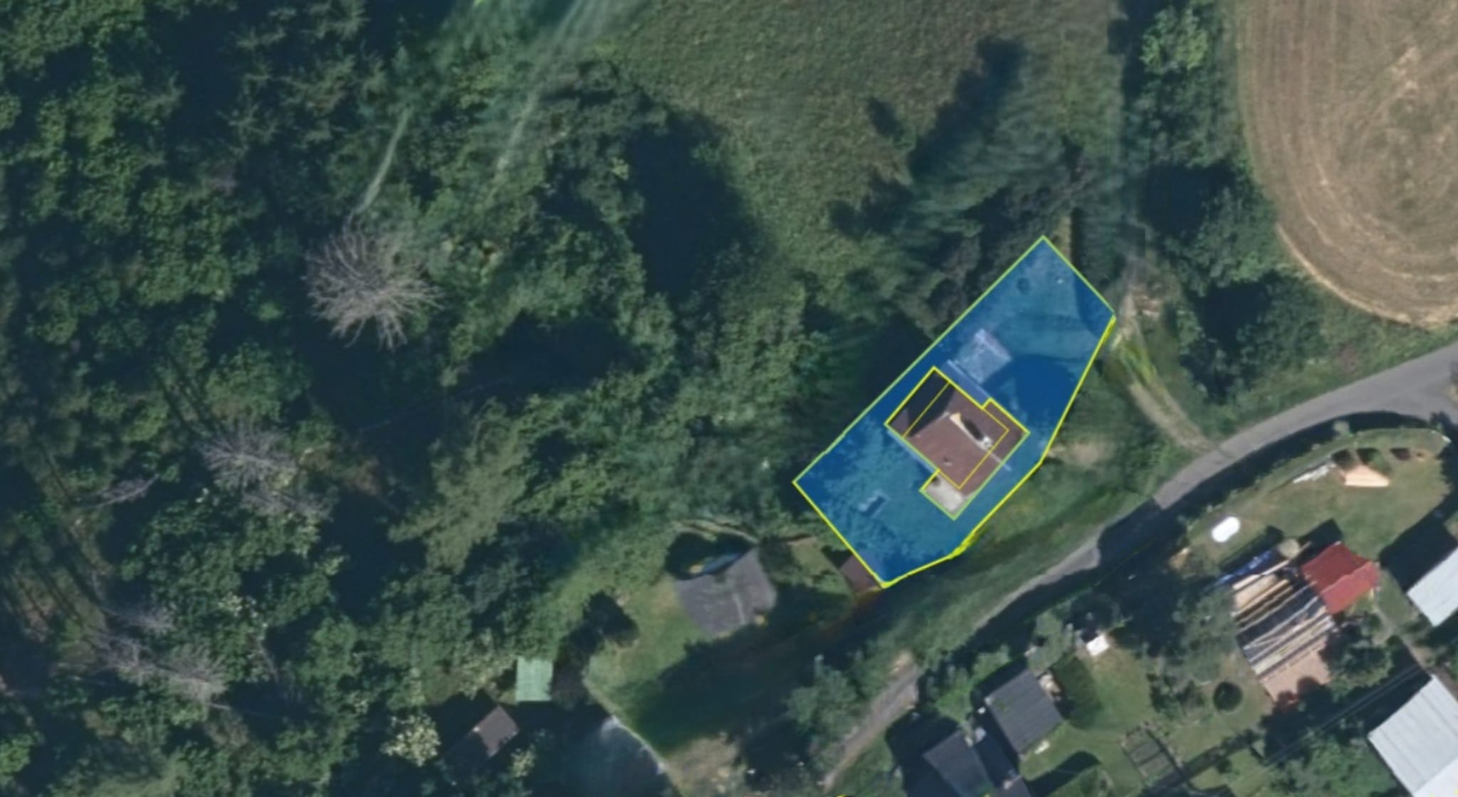 Nemovitost stojí na vlastním slunném pozemku o celkové výměře 304 m². Vše je v osobním vlastnictví majitelů. Nemovitost se nachází v malebném katastrálním území Třebel u Černošína, v blízkosti historického návrší se zříceninou hradu Třebel a údolí řeky Mže. Je to ideální místo pro rodinnou rekreaci, houbaření či turistiku v lokalitě s bohatou historií.